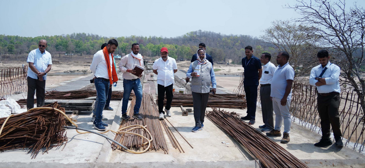 अब झारखंड से जुड़ना हुआ आसान : कन्हर नदी पर बन रहे पुल का मंत्री श्री नेताम ने किया निरीक्षण