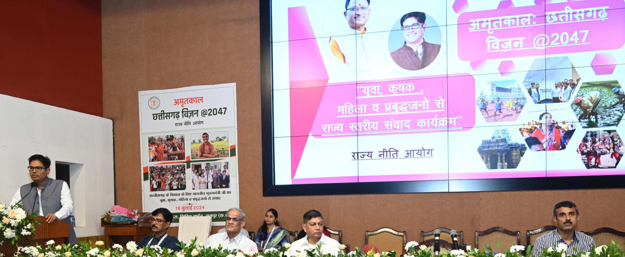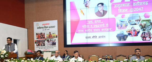 राज्य नीति आयोग द्वारा ‘‘अमृतकाल : छत्तीसगढ़ विजन @2047‘‘ संबंधित विजन डॉक्यूमेंट तैयार करने के संबंध में सभी विभागों, सेक्टर विशेषज्ञों से विचार-विमर्श प्रारंभ किया जा चुका है। इसके लिए आठ वर्किंग ग्रुप का गठन किया गया है। लगातार बैठकें आयोजित कर विचार-विमर्श किया जा रहा है। जनप्रतिनिधियों एवं आम नागरिकों से भी विकसित छत्तीसगढ़ की उनकी परिकल्पना साझा करने के लिए आयोग द्वारा वेब-पोर्टल ‘‘मोर सपना-मोर विकसित छत्तीसगढ़‘‘ लिंकhttps://sdgspc.cg.gov.in/viksitcg/#/home भी तैयार किया गया है।