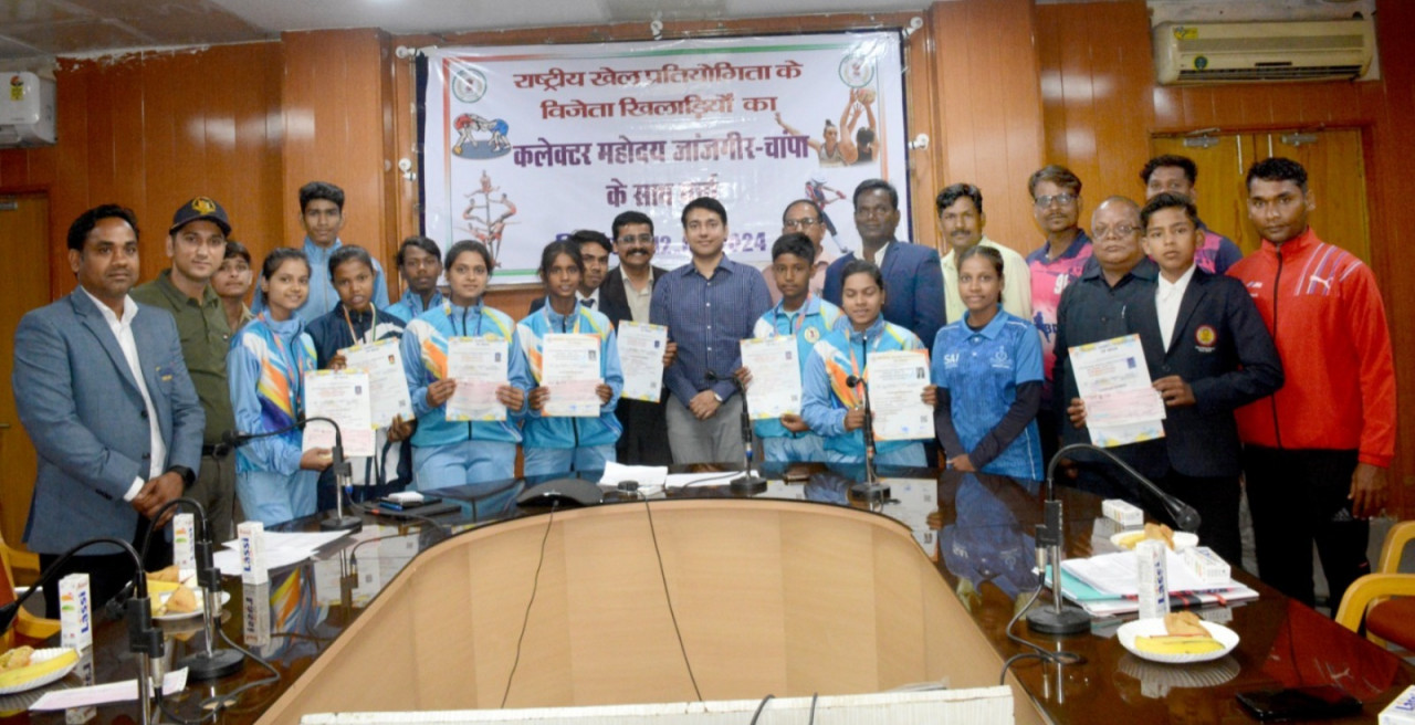 कलेक्टर श्री आकाश छिकारा की अध्यक्षता में कलेक्टोरेट परिसर में राष्ट्रीय खेलकूद प्रतियोगिता में पदक प्राप्त करने वाले जिले के विभिन्न खिलाड़ियों से मुलाकात की। इस दौरान कलेक्टर ने प्रथम, द्वितीय एवं तृतीय स्थान आने वाले खिलाड़ियों को शासन की ओर से पुरस्कार स्वरूप मिलने वाले सम्मान राशि का चेक वितरण कर प्रमाण पत्र प्रदान किया। कलेक्टर ने जिले के राष्ट्रीय अंतर्राष्ट्रीय स्तर पर जिले का नाम रोशन करने वाले खिलाड़ियों का उत्साहवर्धन करते हुए उनकी उपलब्धियों पर बधाई और शुभकामनाएं दी। उन्होंने खिलाड़ियों से कहा कि खेल के प्रति लगातार अभ्यास और लगन कड़ी मेहनत से सफलता जरूर मिलती है। सहायक कलेक्टर श्री दुर्गा प्रसाद अधिकारी ने खिलाड़ियों के उपलब्धियां पर चर्चा करते हुए खिलाड़ियों को बधाई एवं शुभकामनाएं दी। पदक जीतने वाले खिलाड़ियों में रेशमा कश्यप, अखिलेश कुमार, राहुल कुमार यादव, रितेश भारद्वाज, शिक्षा यादव, सुरज केंवट, जिज्ञासा यादव, दीपिका यादव, योगिता केंवट, रोशन गढ़वाल हैं। इस दौरान जिला क्रीड़ा अधिकारी श्री प्रेमलाल पांडेय, श्री दिनेश चतुर्वेदी सहित प्रशिक्षक व खिलाड़ी उपस्थित थे।