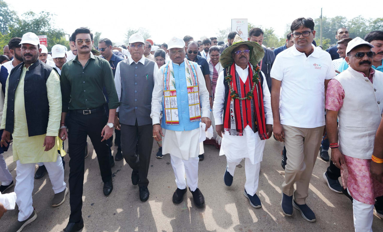 केन्द्रीय श्रम एवं रोजगार तथा युवा मामले एवं खेल मंत्री डॉ. मनसुख मंडाविया एवं मुख्यमंत्री श्री विष्णु देव साय की अगुवाई में आज जशपुर नगर में माटी के वीर पदयात्रा आयोजित हुई। जशपुर के बालाछापर से शुरू हुई यह पदयात्रा लगभग सात किलोमीटर तक की थी, जो कि विभिन्न चौक, चौराहों एवं मार्गाें से होते हुए रणजीता स्टेडियम पहुंची। इसका उद्देश्य धरती आबा भगवान बिरसा मुंडा की जयंती के अवसर पर जनजातीय समुदायों की विरासत और देश के विकास में उनके महत्वपूर्ण योगदान को देश-दुनिया को बताना और सम्मानित करना है। माटी के वीर पदयात्रा को लेकर लोगों में जबरदस्त उत्साह था। पदयात्रा में शामिल लोगों के स्वागत-सम्मान में जगह-जगह सुन्दर रंगोलियां और कलाकृतियां बनाई गई थी। गम्हरिया चौक पर जनजातीय समुदायों के प्राची अस्त्र-शस्त्र एवं वाद्य यंत्रों की प्रदर्शनी लगाई गई थी। कार्यक्रम स्थल एवं पदयात्रा के दौरान आदिवासी नर्तक दलों द्वारा गीत और नृत्य का प्रदर्शन किया गया।