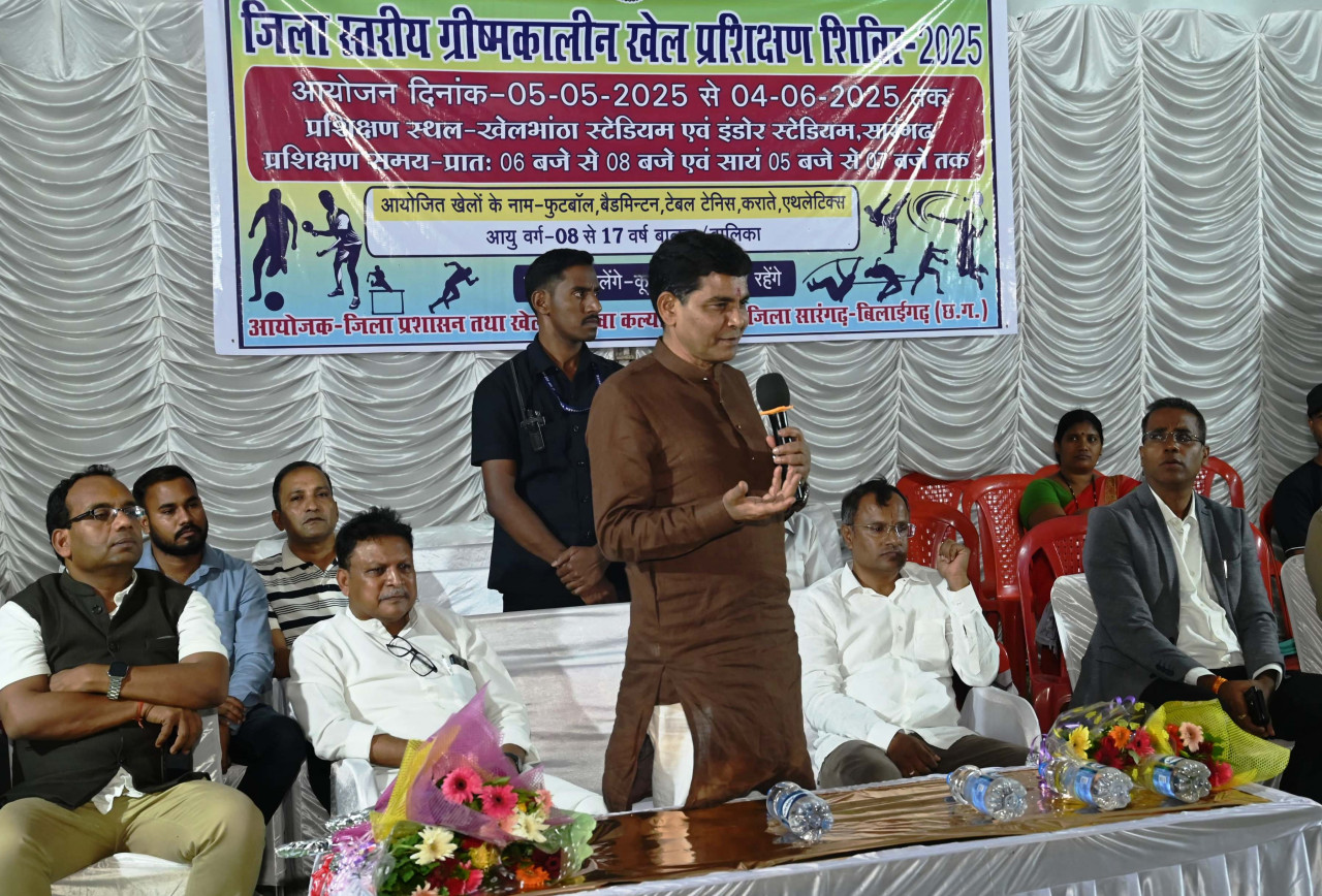 खेल एवं युवा कल्याण मंत्री श्री टंकराम वर्मा ने सारंगढ़ प्रवास के दौरान खेलभांठा मैदान में जिला स्तरीय ग्रीष्मकालीन खेल प्रशिक्षण शिविर का शुभारंभ किया। इस दौरान उन्होंने खिलाड़ियों का उत्साहवर्धन किया और उन्हें प्रोत्साहन स्वरूप खेल सामग्री वितरित की।