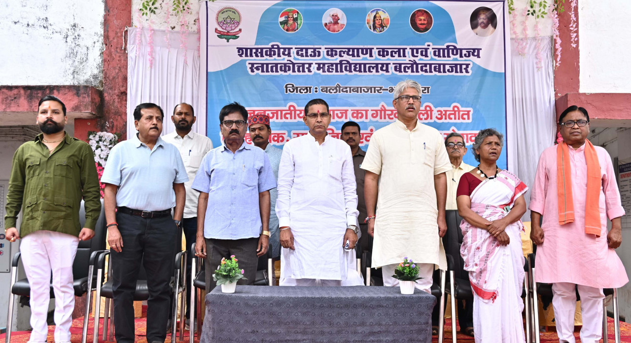 राजस्व मंत्री श्री टंकराम वर्मा बालौदाबाज़ार के शासकीय दाऊ कल्याण कला एवं वाणिज्य स्नातकोत्तर महाविद्यालय में जनजातीय समाज का गौरवशाली अतीत, ऐतिहासिक, सामाजिक एवं आध्यात्मिक योगदान विषय पर आयोजित व्याख्यान कार्यक्रम में शामिल हुए। अतिथियों के द्वारा माँ सरस्वती, जनजातीय समाज के गौरव भगवान बिरसा मुण्डा, शहीद वीरनारयण सिंह, रानी दुर्गावती के छायाचित्र पर माल्यार्पण एवं दीप प्रज्ज्वलित कर कार्यक्रम का शुभारम्भ किया गया।