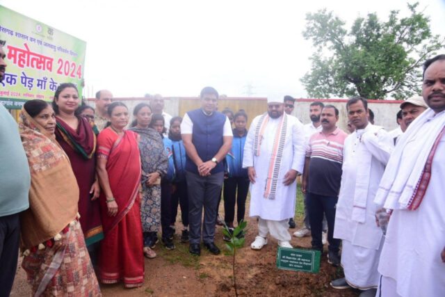 संत श्री विज्ञानदेव, विधायक सुश्री लता उसेंडी, कलेक्टर श्री कुणाल दुदावत सहित उपस्थित लोगों ने एक पेड़ मां के नाम लगाया पौधा