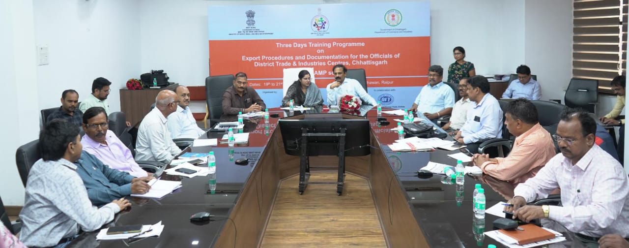 छत्तीसगढ़ में रैम्प (RAMP) योजना के तहत जिला व्यापार एवं उद्योग केंद्रों के अधिकारियों के लिए ‘निर्यात प्रक्रियाएँ और प्रलेखन‘ विषय पर तीन दिवसीय क्षमता विकास प्रशिक्षण कार्यक्रम का सफल आयोजन किया गया। यह प्रशिक्षण 19 से 21 जुलाई 2025 तक रायपुर स्थित उद्योग भवन में संपन्न हुआ, जिसे एक्सपोर्ट फैसिलिटेशन सेंटर और भारतीय विदेश व्यापार संस्थान कोलकाता के सहयोग से आयोजित किया गया। यह प्रशिक्षण कार्यक्रम अधिकारियों को अपने जिलों में निर्यात को बढ़ावा देने और स्थानीय उत्पादों को वैश्विक बाजारों तक पहुंचाने की दिशा में दक्ष और समर्थ बनाने में महत्वपूर्ण सिद्ध हुआ है।