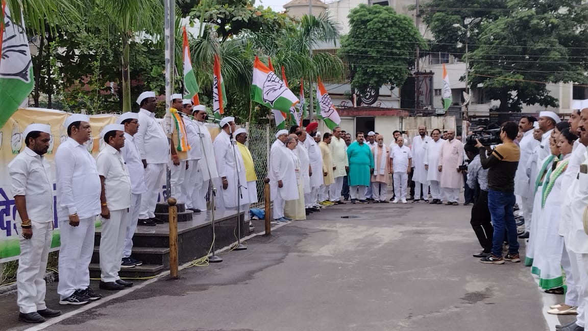 पीसीसी अध्यक्ष दीपक बैज ने राजीव भवन में ध्वजारोहण किया