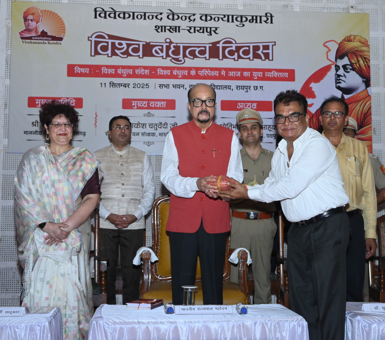 स्वामी विवेकानंद कन्याकुमारी केंद्र शाखा रायपुर के सौजन्य से दुर्गा कॉलेज रायपुर के सभागार में यह संगोष्ठी आयोजित की गई थी, जिसमें श्री डेका बतौर मुख्य अतिथि उपस्थित रहे। स्वामी विवेकानंद द्वारा वर्ष 1893 में शिकागो के विश्व धर्म सम्मेलन में आज के दिन ही ऐतिहासिक वक्तव्य के माध्यम से भारत की उज्जवल संस्कृति एवं परंपरा को दुनिया के समक्ष रखा गया था। इस विशेष दिन को विश्व बंधुत्व दिवस के रूप में मनाया जाता है।