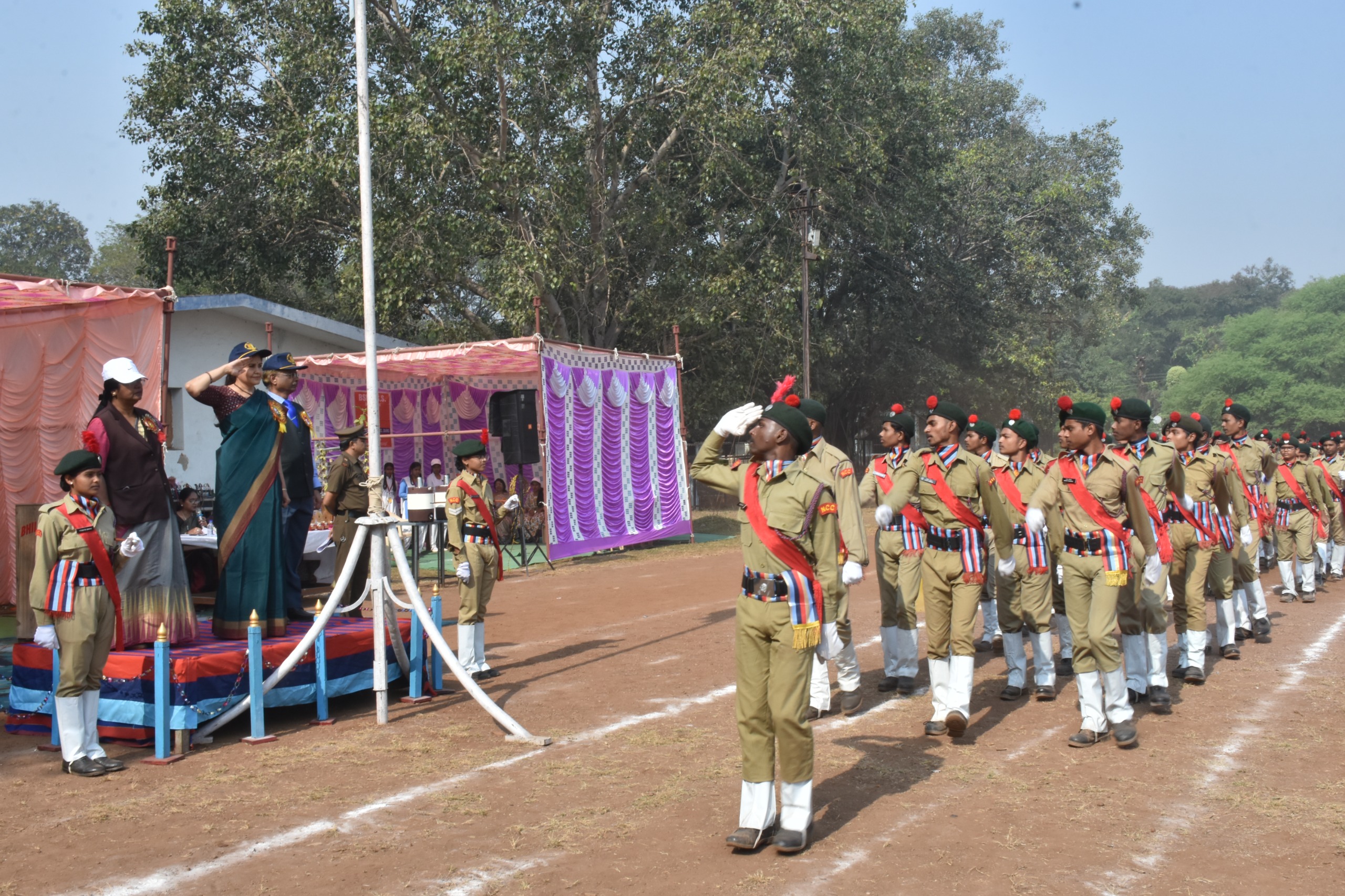इस अवसर पर मुख्य अतिथि द्वारा ध्वजारोहण के उपरांत परेड का निरीक्षण किया गया। तत्पश्चात मुख्य अतिथि ने सभी कैडेटों को एनसीसी दिवस की शपथ दिलाई।