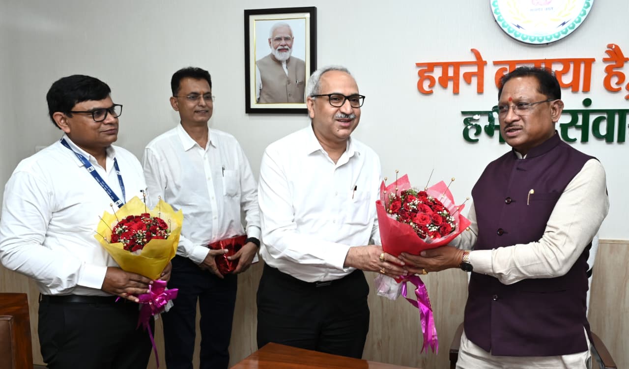 मुख्यमंत्री श्री विष्णु देव साय से भिलाई स्टील प्लांट के नवनियुक्त निदेशक श्री चित्त रंजन महापात्र ने की सौजन्य मुलाकात