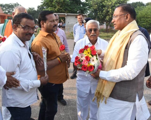 मुख्यमंत्री श्री विष्णुदेव साय का भिलाई-3 पहुंचने पर स्थानीय जनप्रतिनिधियों और वरिष्ठ प्रशासनिक अधिकारियों ने पुष्प गुच्छ भेंट कर आत्मीय स्वागत किया। इस अवसर पर विधायक सर्वश्री डोमन लाल कोर्सेवाडा, श्री ललित चंद्राकर एवं अन्य जनप्रतिनिधि तथा संभाग आयुक्त श्री एस एन राठौर, आई जी श्री आर जी गर्ग, कलेक्टर सुश्री ऋचा प्रकाश चौधरी, एस.पी. श्री जितेन्द्र शुक्ला एव अन्य अधिकारी उपस्थित थे।