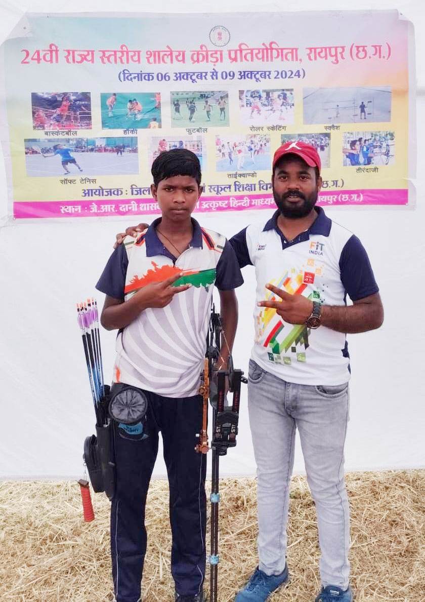 24 वीं राज्य स्तरीय शालेय क्रीड़ा (तीरंदाजी) प्रतियोगिता 6 अक्टूबर से 9 अक्टूबर 24 तक रायपुर में आयोजित की गई। इस प्रतियोगिता में जशपुर जिले में जिला प्रशासन के अंतर्गत संचालित तीरंदाजी केंद्र एवं एकलव्य खेल अकादमी जशपुर के विशेष पिछड़ी जनजाति (पहाड़ी कोरवा) वर्ग के खिलाड़ी मनोज राम ने अंडर 17 वर्ष कम्पाउन्ड राउण्ड में तृतीय स्थान प्राप्त कर कांस्य पदक हासिल कर राष्ट्रीय स्तर प्रतियोगिता के लिए चयनित हुआ। इसी प्रकार खिलाड़ी श्री आकाश राम ने अंडर 14 वर्ष कम्पाउन्ड राउण्ड में प्रथम स्थान प्राप्त कर स्वर्ण पदक हासिल कर राष्ट्रीय स्तर प्रतियोगिता के लिए चयनित हआ। दोनों खिलाड़ी राष्ट्रीय स्तर पर छत्तीसगढ़ राज्य का प्रतिनिधित्व करेंगे।