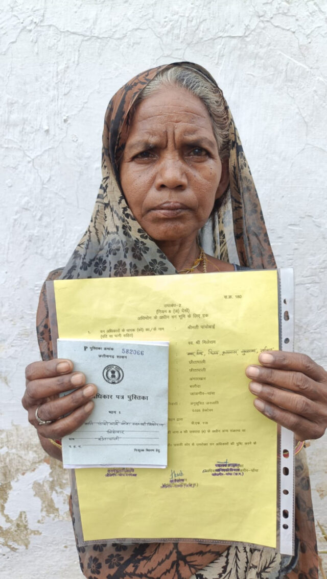 वर्षों से अपने परिवार के साथ जंगल पर निर्भर रहकर खेती करने वाली श्रीमती पांचोबाई के पास अपनी ज़मीन का कोई कानूनी हक़ नहीं था। हर वर्ष उन्हें इस असमंजस का सामना करना पड़ता था, क्या हम अगली फसल भी इसी ज़मीन पर बो पाएँगे? लेकिन धरती आबा अभियान के अंतर्गत आयोजित जनजातीय ग्राम उत्कर्ष शिविर में उन्हें वह अधिकार मिला, जिसकी उन्हें वर्षों से प्रतीक्षा थी।