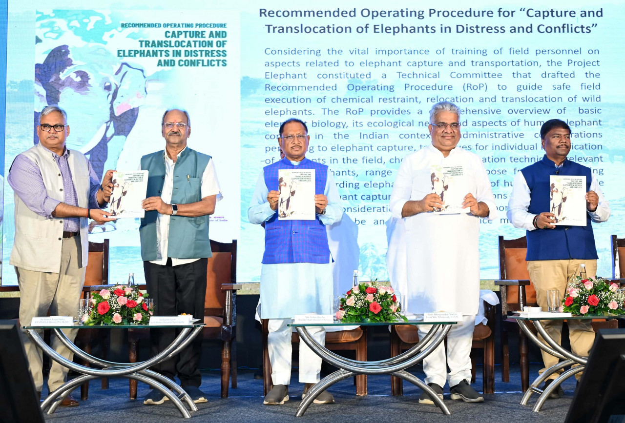 केन्द्रीय पर्यावरण, वन और जलवायु परिवर्तन मंत्री श्री भूपेन्द्र यादव ने कार्यक्रम को सम्बोधित करते हुए हाथियों के संरक्षण के लिए भारत की भागीदारी से किए गए प्रयासों पर विस्तार से प्रकाश डाला। उन्होंने कहा कि हाथियों के संरक्षण में भारत की अग्रणी भूमिका रही है। केन्द्रीय मंत्री श्री यादव ने हाथियों के संरक्षण एवं मानव कल्याण सुनिश्चित करने के लिए अंतर-क्षेत्रीय जुड़ाव (क्रॉस सेक्टोरल एंगेजमेंट) की आवश्यकता पर बल दिया। उन्होंनेे कहा कि यदि हम हाथियों को बचाएंगे तो वन भी समृद्ध होंगे, क्योंकि हाथियों को ‘पारिस्थितिकी तंत्र के इंजीनियर‘ के रूप में जाना जाता है। पर्यावरण, वन और जलवायु परिवर्तन मंत्री ने देश में मानव-हाथी द्वंद को कम करने की आवश्यकता पर बल दिया।कार्यक्रम में पर्यावरण, वन और जलवायु परिवर्तन मंत्रालय के वरिष्ठ अधिकारी, हाथी परियोजना के निदेशक श्री रमेश पाण्डेय तथा छत्तीसगढ़ के प्रधान मुख्य वन संरक्षक एवं वन बल प्रमुख श्री वी. श्रीनिवास राव, प्रधान मुख्य वन संरक्षक वन्यप्राणी श्री सुधीर अग्रवाल, वन विभाग के वरिष्ठ अधिकारीगण, वन्यप्राणी विशेषज्ञ, भारतीय वनस्पति सर्वेक्षण, भारतीय प्राणी सर्वेक्षण, कृषि, विद्युत एवं रेल्वे विभाग के अधिकारी उपस्थित थे।