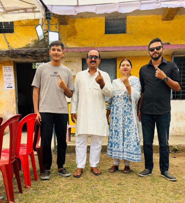 राधास्वामी नगर जनविकास समिति के अध्यक्ष सुरेन्द्र त्रिपाठी ने आज रायपुर नगर निगम महापौर एवं वार्ड पार्षद निर्वाचन के लिए पटेल विद्या मंदिर,महाराज बंद तालाब के बाजू स्थित मतदान केंद्र में सपरिवार पहुंचकर मतदान किया,छोटे पुत्र पीयूष त्रिपाठी ने पहली बार मतदान किया।उन्होंने प्रदेशवासियों से लोकतंत्र को सशक्त बनाने के लिए अपने मताधिकार का प्रयोग करने की अपील की। उन्होंने कहा कि लोकतंत्र की मजबूती नागरिकों की भागीदारी पर निर्भर करती है, और प्रत्येक मतदाता का वोट क्षेत्र के विकास की दिशा तय करता है। श्री त्रिपाठी ने कहा कि मतदान न केवल हमारा अधिकार है, बल्कि यह एक महत्वपूर्ण जिम्मेदारी भी है, जिससे हम अपने शहर और प्रदेश के भविष्य का निर्धारण करते हैं। उन्होंने युवाओं और प्रथम बार मतदान कर रहे नागरिकों से विशेष रूप से आग्रह किया कि वे अपने मताधिकार का अवश्य प्रयोग करें।