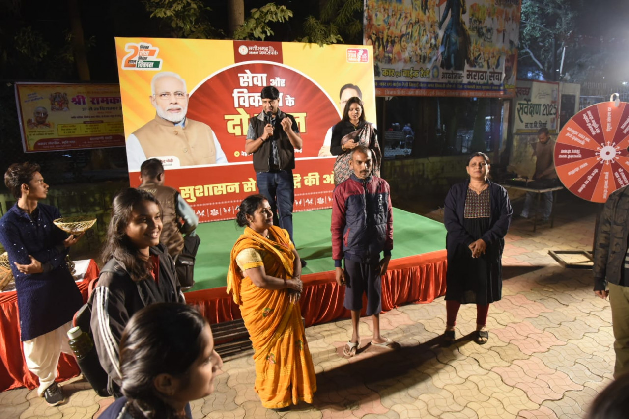 सेवा और विकास के दो वर्ष पूर्ण होने के उपलक्ष्य में जनसंपर्क विभाग द्वारा नेहरू नगर पार्क, जोन क्रमांक 1 भिलाई में एक दिवसीय विशेष कार्यक्रम का आयोजन किया गया। जिसमें बड़ी संख्या में स्थानीय नागरिकों, युवाओं एवं बच्चों ने उत्साहपूर्वक भाग लिया। कार्यक्रम में रेडियो जॉकी (आरजे) श्री अनिमेश जैन एवं उनकी टीम ने रोचक गतिविधियों का संचालन किया, जिससे पूरे आयोजन में उत्साह और जीवंतता बनी रही।