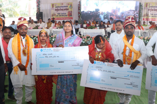 इस अवसर पर सांसद श्री चिंतामणि महाराज, विधायक श्री भूलन सिंह मरावी , पूर्व गृह मंत्री और कुदरगढ़ ट्रस्ट के अध्यक्ष श्री रामसेवक पैंकरा एवं महिला बाल विकास विभाग के अधिकारी-कर्मचारी तथा वर-वधु के परिजन उपस्थित थे।