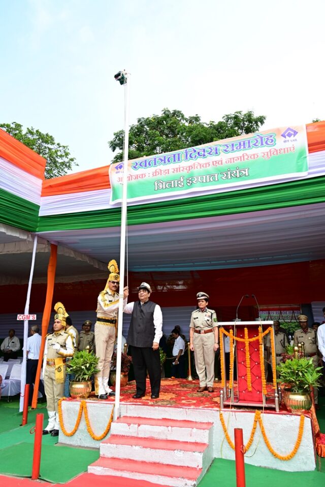 संयंत्र के निदेशक प्रभारी श्री अनिर्बान दासगुप्ता ने वहां उपस्थित जनों को सम्बोधित करते हुए 78वें स्वतंत्रता दिवस की शुभकामनायें दीं तथा अपने संदेश में, सारगर्भित तरीके से भिलाई इस्पात संयंत्र की उल्लेखनीय और वर्तमान वित्त वर्ष की उपलब्धियों, भविष्य की रूपरेखा एवं लक्ष्यों पर प्रकाश डाला। उन्होंने पर्यावरण संरक्षण में आगामी लक्ष्यों को प्राप्त करने के लिए बीएसपी के भविष्य के प्रयासों और दृष्टिकोण पर बल दिया। जिसमें 2030 तक “नेट जीरो” कार्बन उत्सर्जन प्राप्त करना, सौर ऊर्जा पहल, ग्रीन स्टील का उत्पादन, चिकित्सा और स्वास्थ्य सेवाओं का विस्तार, डिजिटलीकरण और आर्टिफिशियल इंटेलिजेंस के अभिनव अभ्यास, सीएसआर पहल, शिक्षा, महिला सशक्तिकरण आदि शामिल है। श्री अनिर्बान दासगुप्ता ने कहा कि हम इस बात पर बेहद गर्व करते हैं कि हमारा राष्ट्रीय वाहक, “भारतीय रेल” की ट्रेन, भिलाई इस्पात संयंत्र में उत्पादित पटरियों पर चलती है और हर दिन देश भर में लाखों यात्रियों और हजारों टन माल का परिवहन करती है। हमारे द्वारा उत्पादित इस्पात, राष्ट्रीय महत्व की महत्वपूर्ण परियोजनाओं जैसे बांध, पुल, सुरंग, फ्लाईओवर और एक्सप्रेसवे आदि को मजबूती प्रदान करता है। हमने नौसेना के विमानवाहक पोत, आईएनएस विक्रांत और अन्य युद्धपोतों के निर्माण के लिए इस्पात की आपूर्ति की है। हमने ऊर्जा एवं विद्युत के क्षेत्र में, तेल एवं गैस क्षेत्र में, अंतरिक्ष के क्षेत्र में, परमाणु ऊर्जा प्रतिष्ठानों तथा भारी मशीनरी निर्माण, मेट्रो आदि महत्वपूर्ण परियोजनाओं के लिए भी इस्पात की आपूर्ति की है। इसी क्रम में, उन्होंने सुरक्षा को प्राथमिकता देते हुए कहा कि, मैं सभी से अपील करता हूँ कि हम जो भी काम करें या दूसरों को सौंपें, उसमें सुरक्षा प्रोटोकॉल का सख्ती से पालन करें। हमें हमेशा यह ध्यान रखना चाहिए कि जिस तरह हमारा परिवार चाहता है कि हम सुरक्षित घर वापस लौटें, उसी तरह प्लांट में काम करने वाले हर कर्मचारी और ठेका मजदूर का परिवार भी यही चाहता है। हमें असुरक्षित काम या लापरवाही को बिल्कुल भी बर्दाश्त नहीं करना है, हमेशा सतर्क रहना है और कर्मचारियों और ठेका श्रमिकों की सुरक्षा को सबसे अधिक महत्व देना है। हम एक टन स्टील भी किसी मानव जीवन की कीमत पर नहीं चाहते हैं।